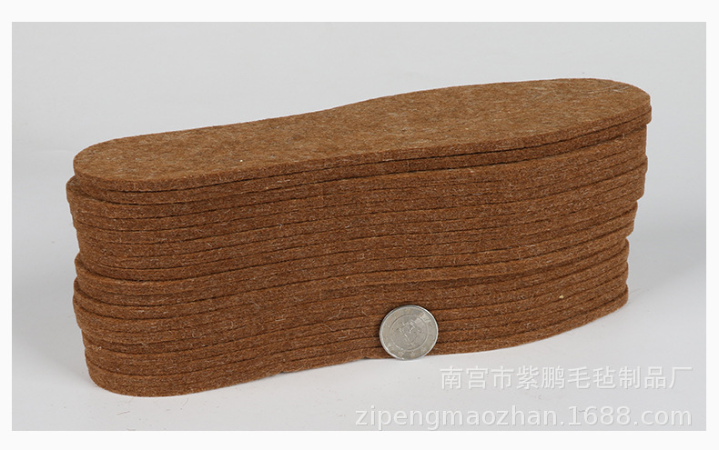 本厂主要经营3MM、4MM男女通用毛毡鞋垫、是全国比较通用厚度的毛毡鞋垫、也可订做6MM.7MM.8MM厚毛毡鞋垫、