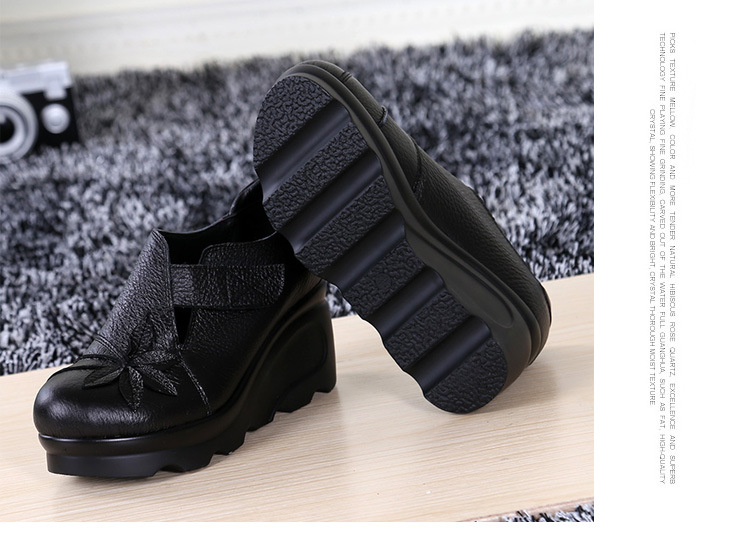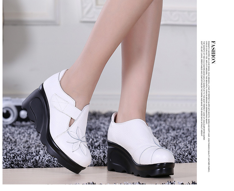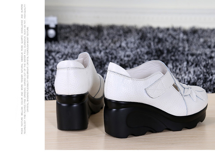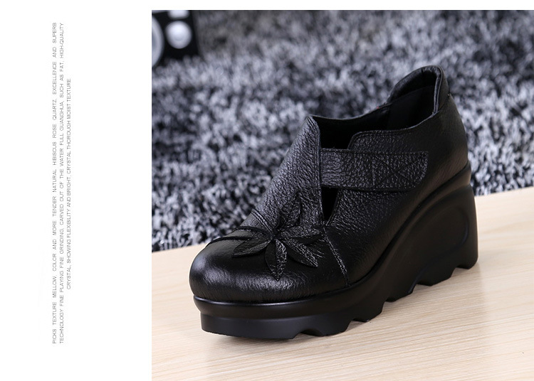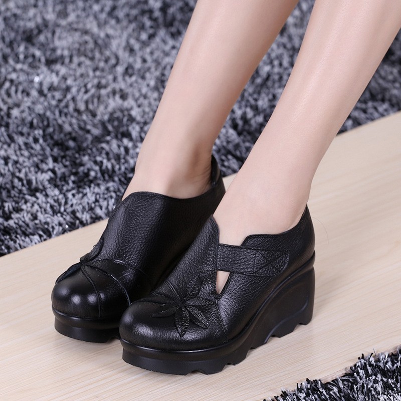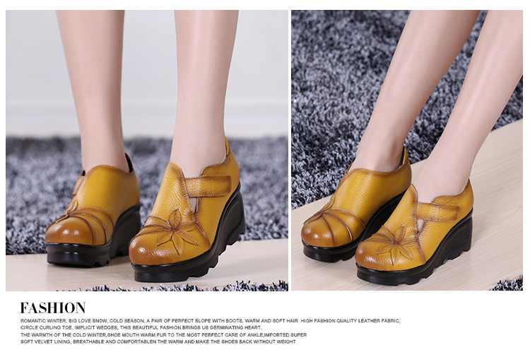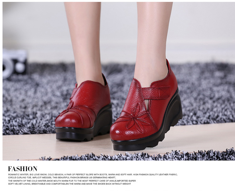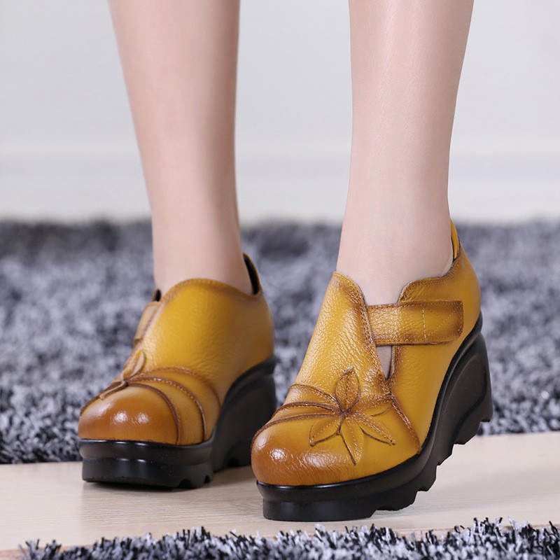 첩의 아름다움 가을 새로운 정품 가죽 여성용 싱글 슈즈 웨지 하이힐 에스닉 스타일 플랫폼 슈즈 여성 신발스토어 가기