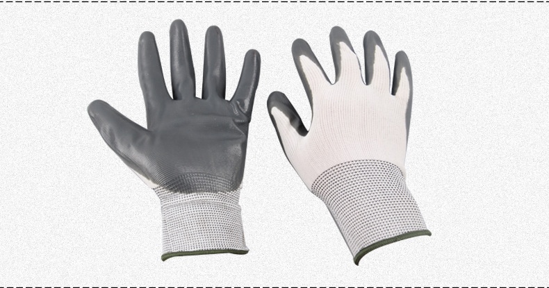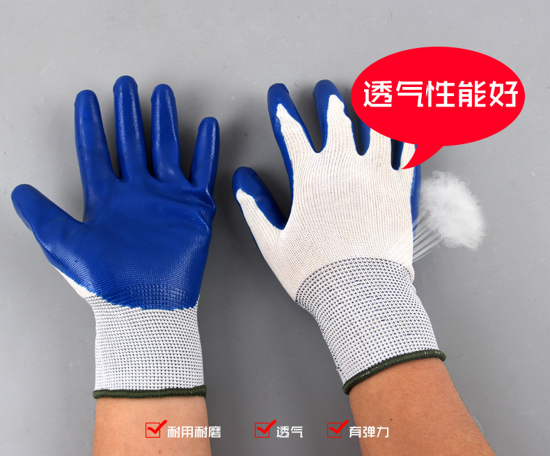 건설 및 유지 보수를위한 공장 도매 함침 반 교수형 장갑 13 핀 고무 보호 노동 보호 산업용 나일론 니트릴 장갑스토어 가기