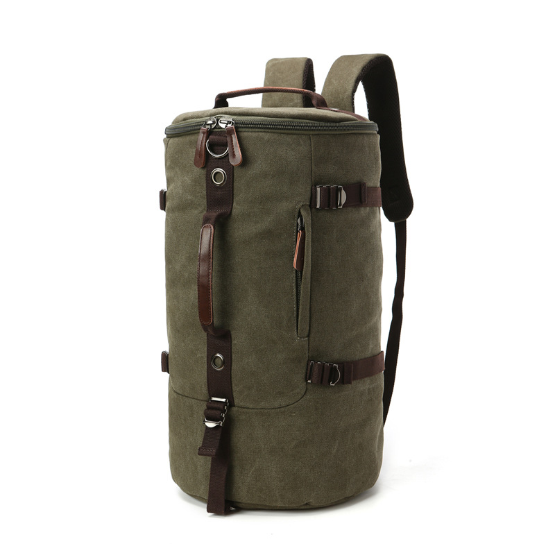 Makya 캔버스 실린더 백 대용량 배낭 어깨 휴대용 크로스 바디 트리플 백 남성용 여행 배낭