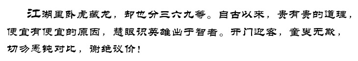 当您收到包裹的时候,请不要急于在收货单上签字,请一定要当着快递人员的面打开当场验货,如宝贝有损坏或数量缺少请一定拒收!并当场联系掌柜(快递单上有联系电话)。一旦签字即表示您对货品的数量内容及完好性予以认可,掌柜将无法为买家们向快递公司索赔了!也请恕本店不再承担由货品内容不符、缺少或者损坏造成的损失!收到物品后有任何问题请及时联系我们!掌柜与买家一起解决问题。让买家百分百满意而归!最后,祝买家在本店购物愉快!