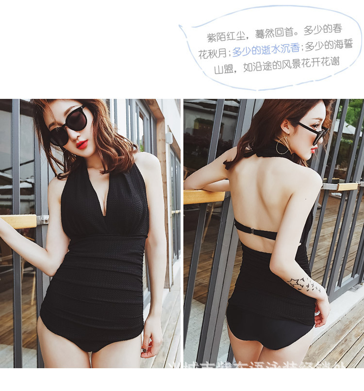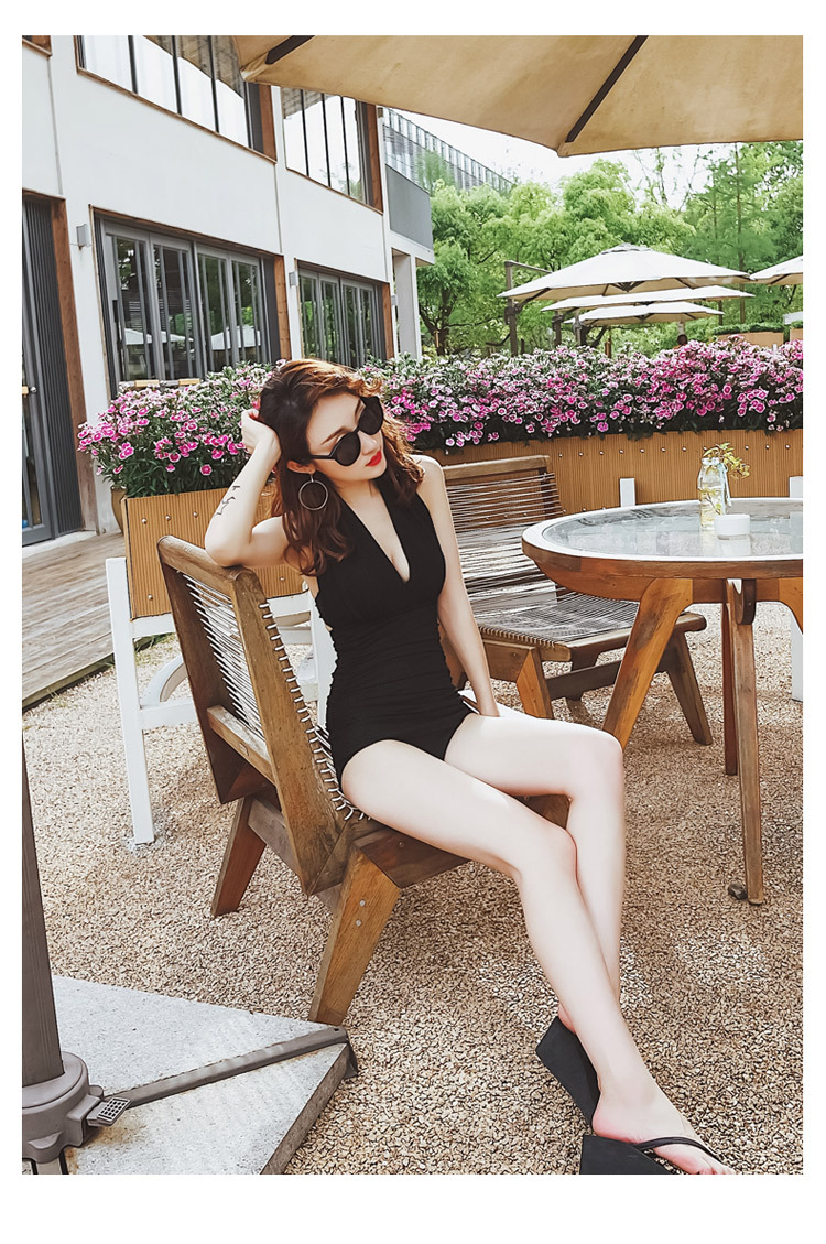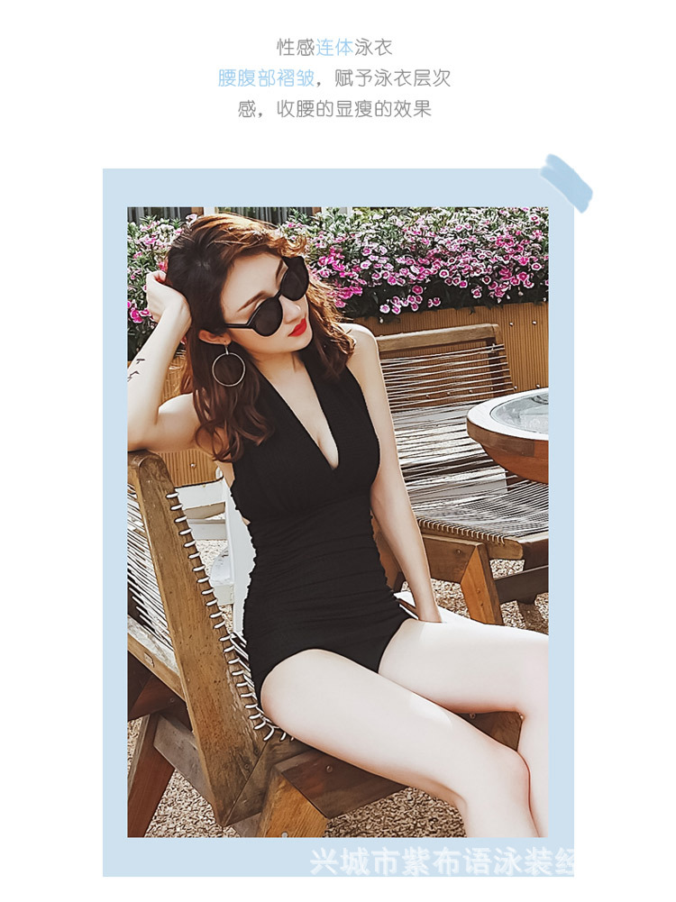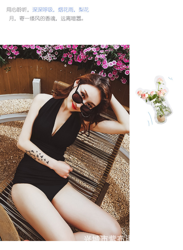 여성용 원피스 수영복, 배를 가려주는 보수적인 디자인, 슬림한 효과, 홀터넥, 등이 노출된 디자인, 큰 가슴과 작은 가슴 모두를 위한 스틸링이 있는 디자인, 온천욕에 적합한 섹시한 수영복