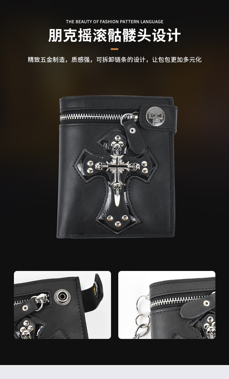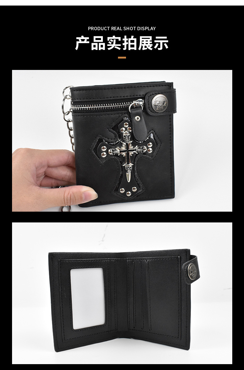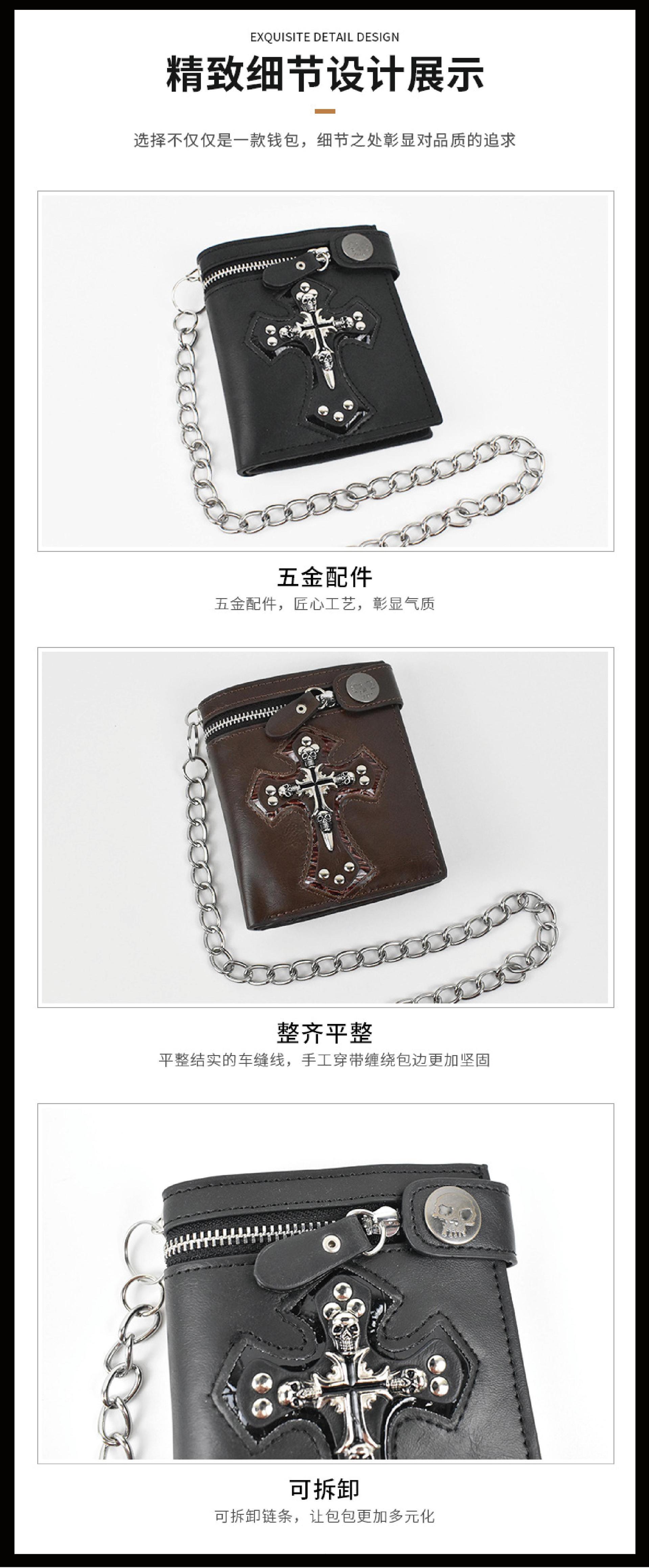 아마존 해골 남성 지갑 크로스 도난 방지 체인 리벳 지갑 맞춤형 유행 남성 패션 지갑