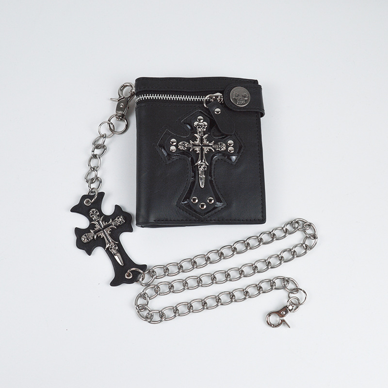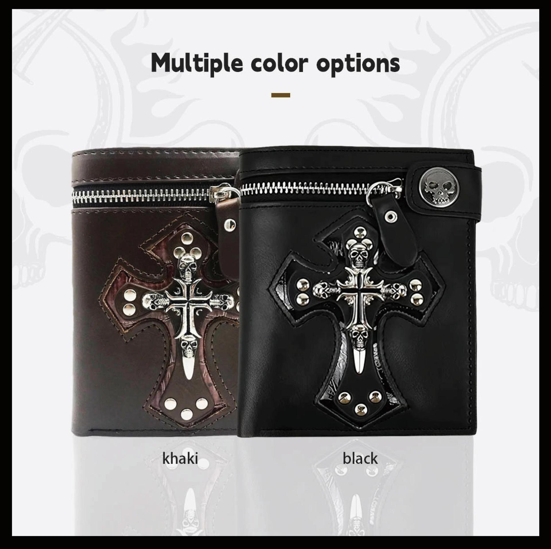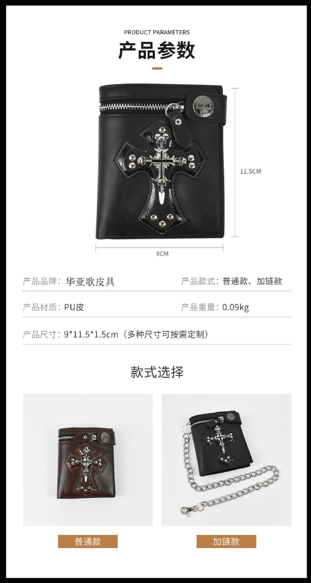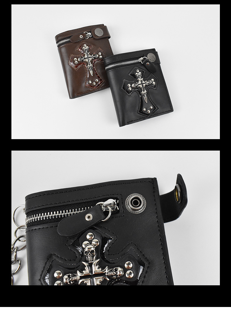 아마존 해골 남성 지갑 크로스 도난 방지 체인 리벳 지갑 맞춤형 유행 남성 패션 지갑