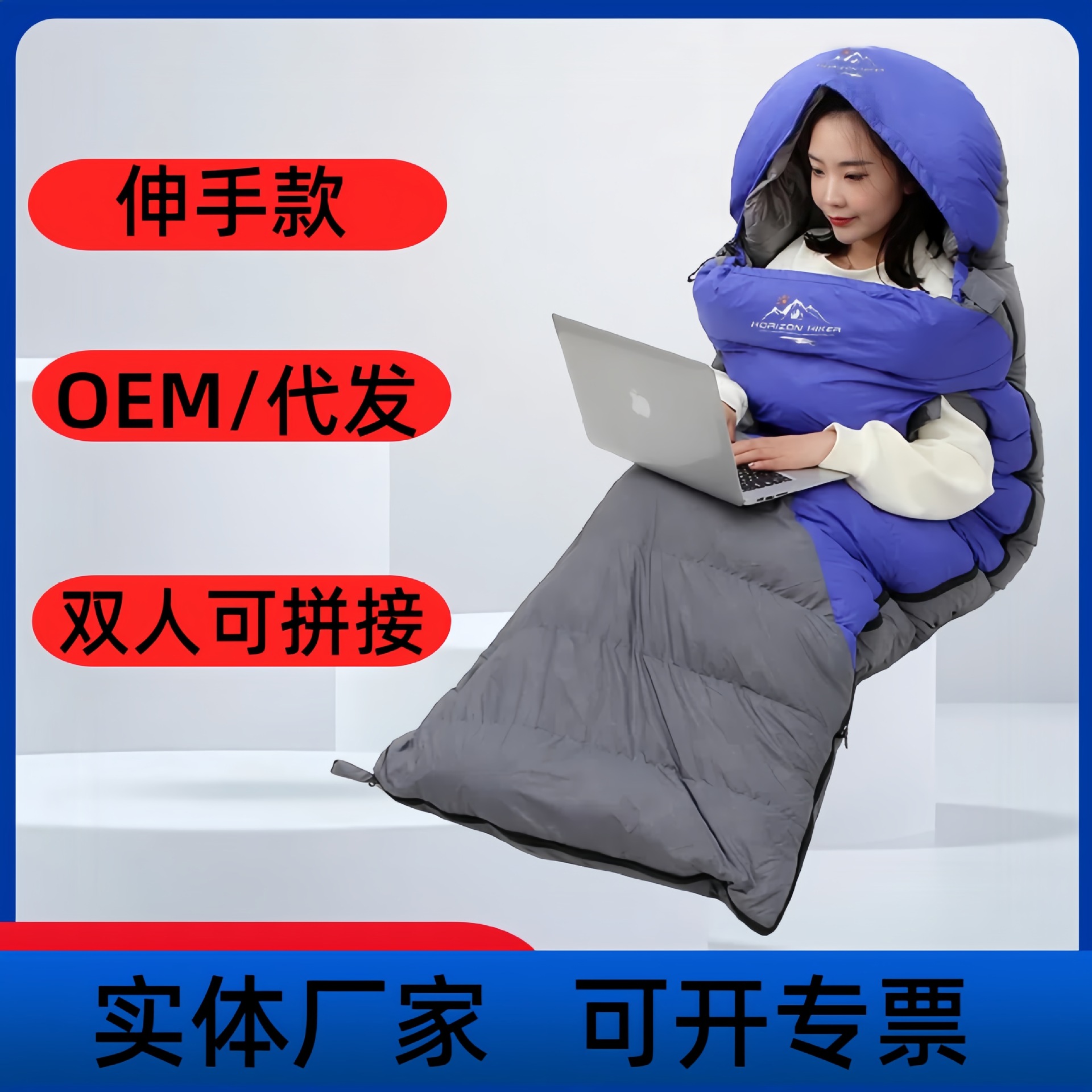 손으로 닿을 수 있는 야외용 다운 침낭, 성인용 두꺼운 봉투, 오염 방지 거위털 침낭, 이중 침낭, 사계절 도매스토어 가기