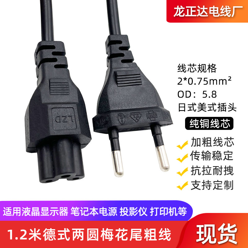 4.0圆插德式插脚 适配器笔记本电脑插头线 直头欧规梅花尾电源