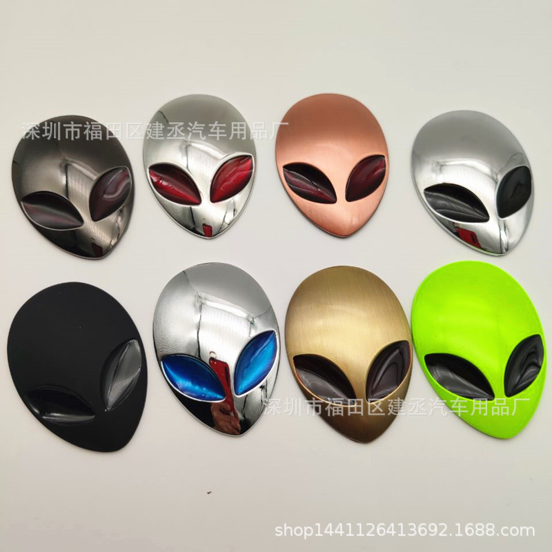 자동차 성격 자동차 스티커 외계인 금속 자동차 로고 3D 자동차 스티커 창조적 인 재미 있은 수정 로고 금속 자동차 스티커스토어 가기