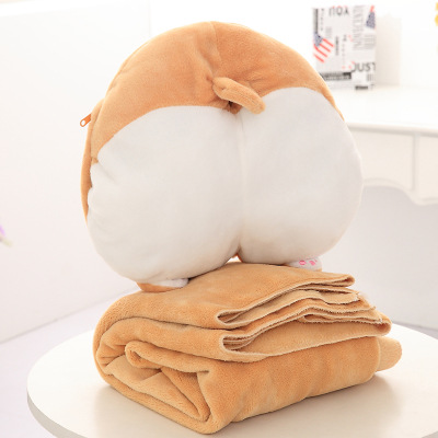 코기 엉덩이 낮잠 베개 이불 이중 사용 산호 벨벳 허리 베개 쿠션 에어컨 담요 3 대 1스토어 가기