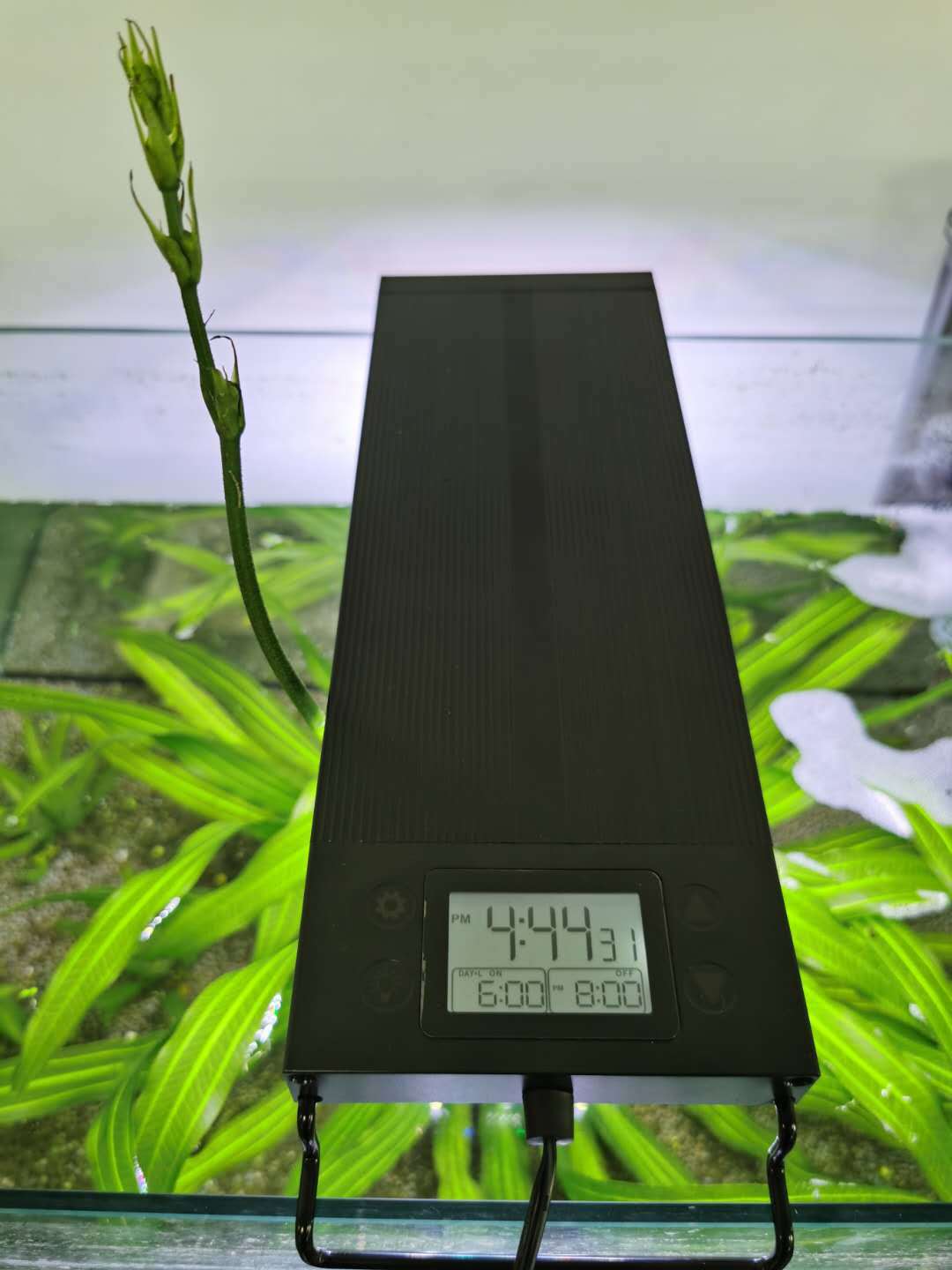 定时主灯DAYLIHGT (白天模式)开与关,开灯时模拟日出效果90分钟内由最低亮度开始慢慢到最亮。防止灯光突然变亮鱼儿受到惊吓跳缸。