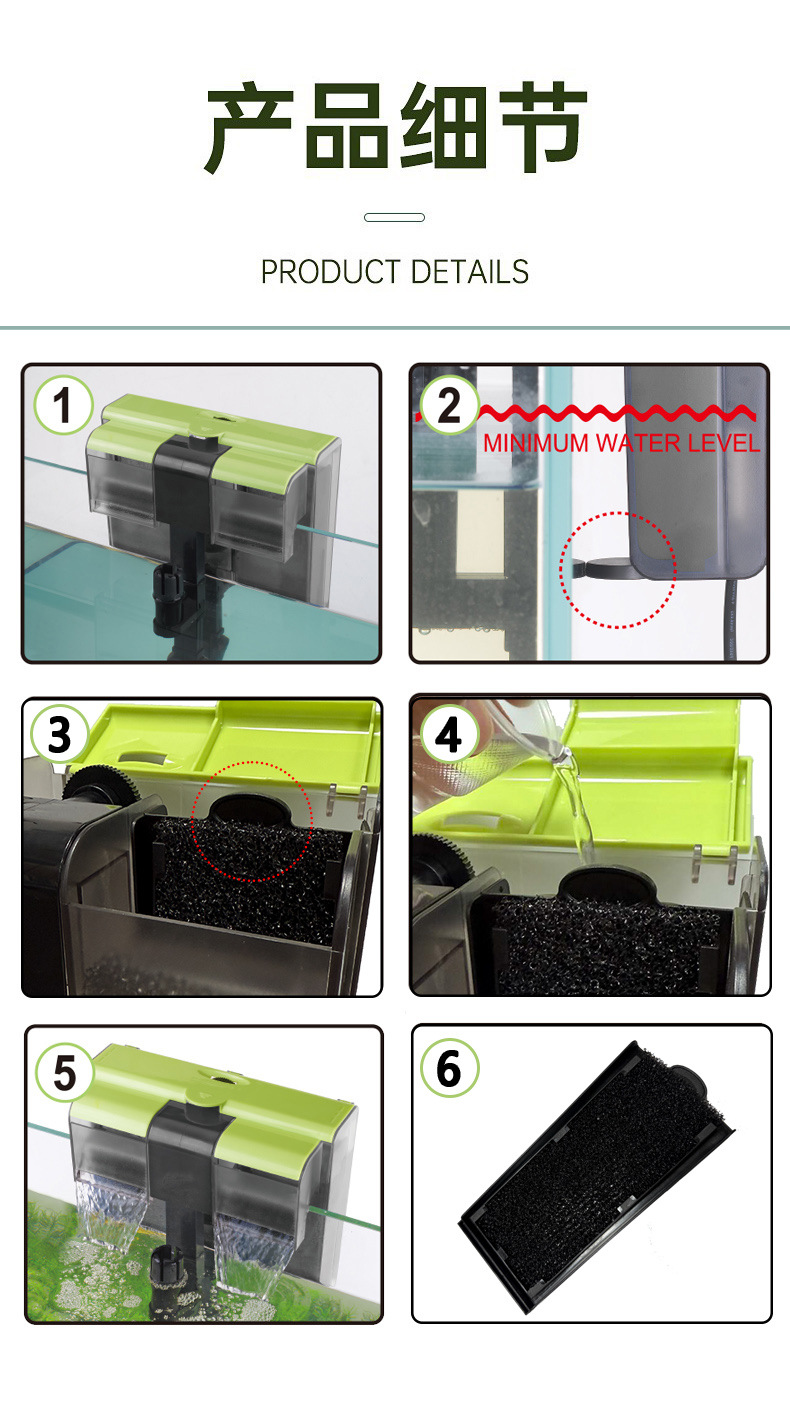 어항 외부 폭포 정수 필터 UV 살균 사이클 산소 음소거 매달려 실린더 생태 물 풀 필터 버킷