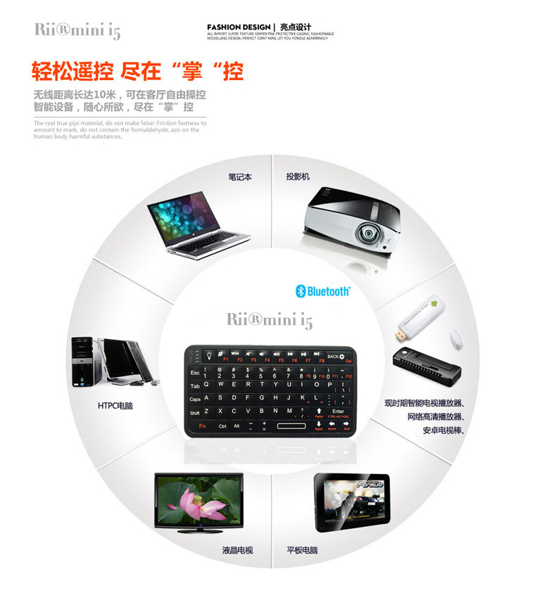 Rii i5无线蓝牙键鼠迷你高亮背光手机平板小键盘 智能遥控 518