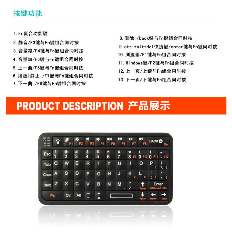 备注: 适用于PC、HTPC、MID、PS3、投影仪、手机、平板、 智能电视、 安卓盒子等设备 支持