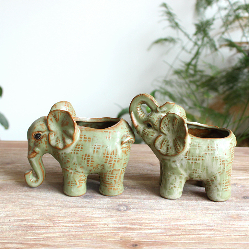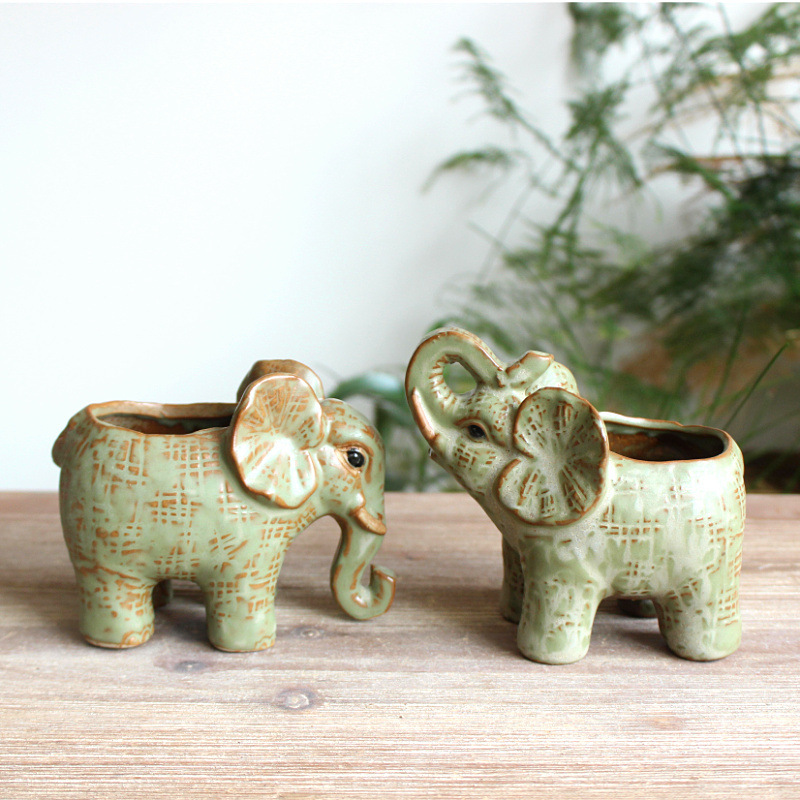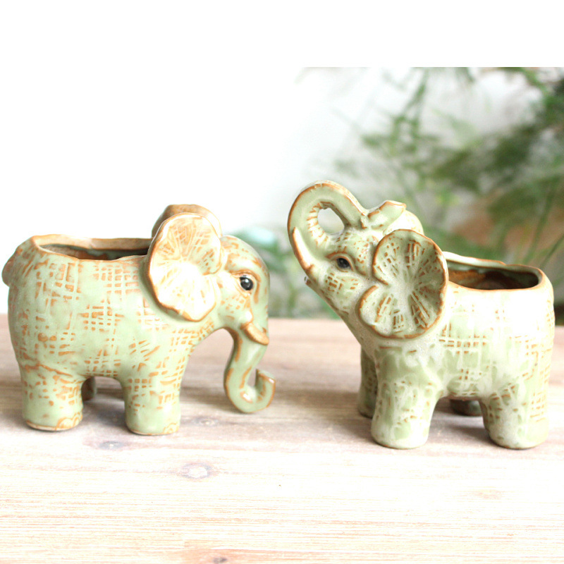 공급 세라믹 가마 유약 다육 화분 길조 아기 코끼리 다육 식물 세라믹 화분 작은 모종 화분 5716