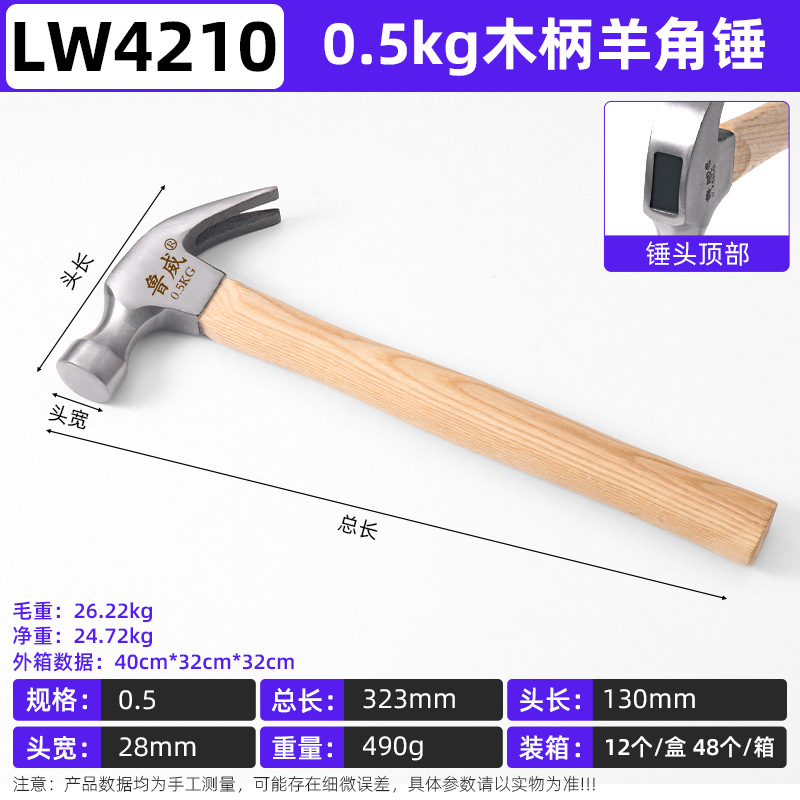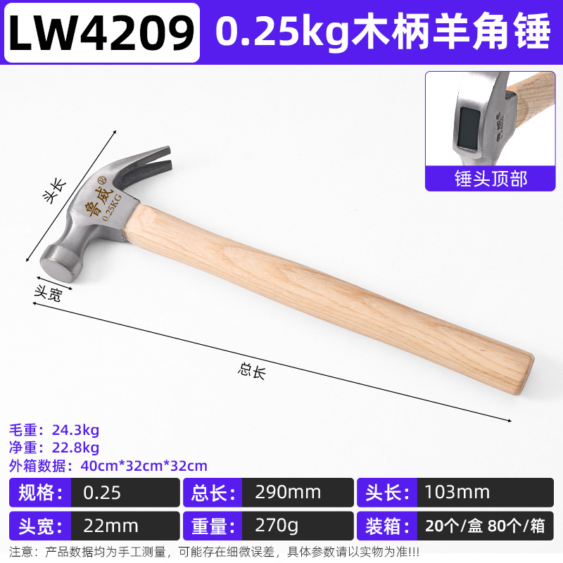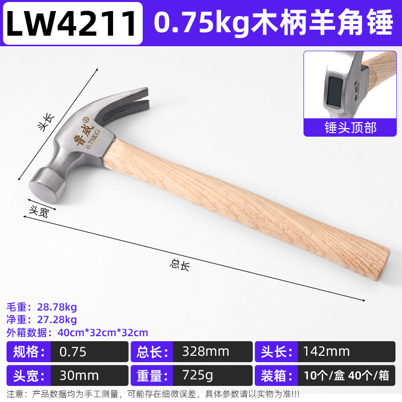 Luwei 도구 나무 손잡이 앵글 해머 풀 네일 통합 가정용 목공 특수 나무 손잡이 해머 해머 망치 나무 손잡이스토어 가기
