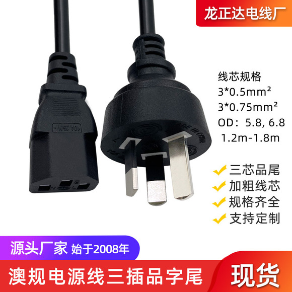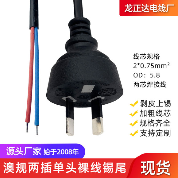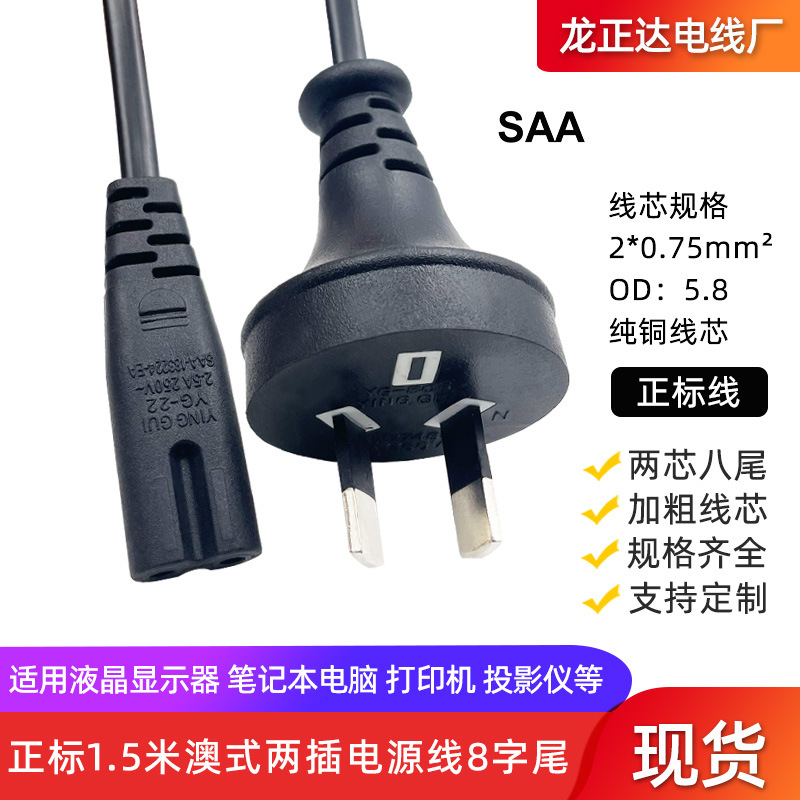 澳规两插八字尾插头线 澳式插头IRAM二插8尾连接线两芯澳标电源线