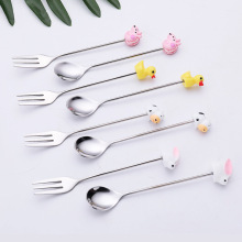 2023亚马逊创意甜品咖啡勺 树脂不锈钢勺叉套装 不锈钢勺子