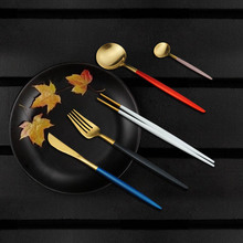 亚马逊葡萄牙餐具刀叉勺套装PVD镀钛喷漆 批发304不锈钢刀叉勺
