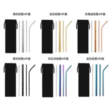 跨境304不锈钢镀钛彩色金属吸管套装 饮料奶茶咖啡吸管4件套