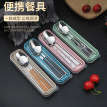 新款创意304不锈钢便携餐具 学生餐具旅行餐盒三件套叉勺筷套装