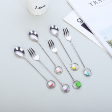 网红创意不锈钢餐具勺叉套装 精品饰品吊坠咖啡甜品不锈钢勺叉