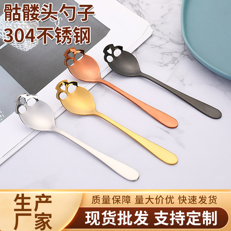 공장 재고 크로스 보더 스테인레스 스틸 스푼 믹싱 스푼 304 해골 설탕 스푼 레스토랑 크리에이티브 식기 커피 스푼스토어 가기