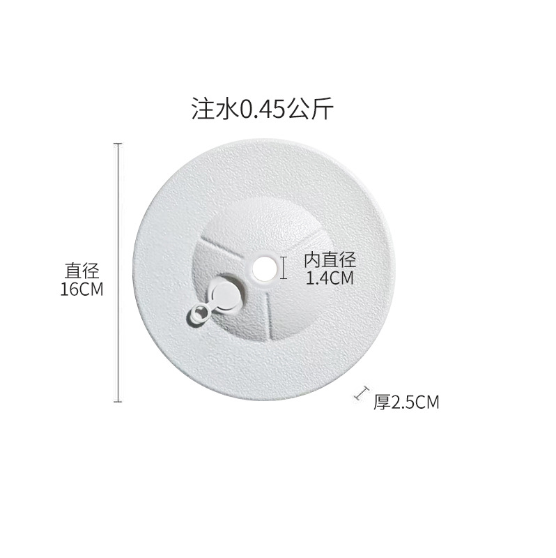 每个底座:直径32cm;注水5kg;插口直径2cm;重量0.42kg/个。