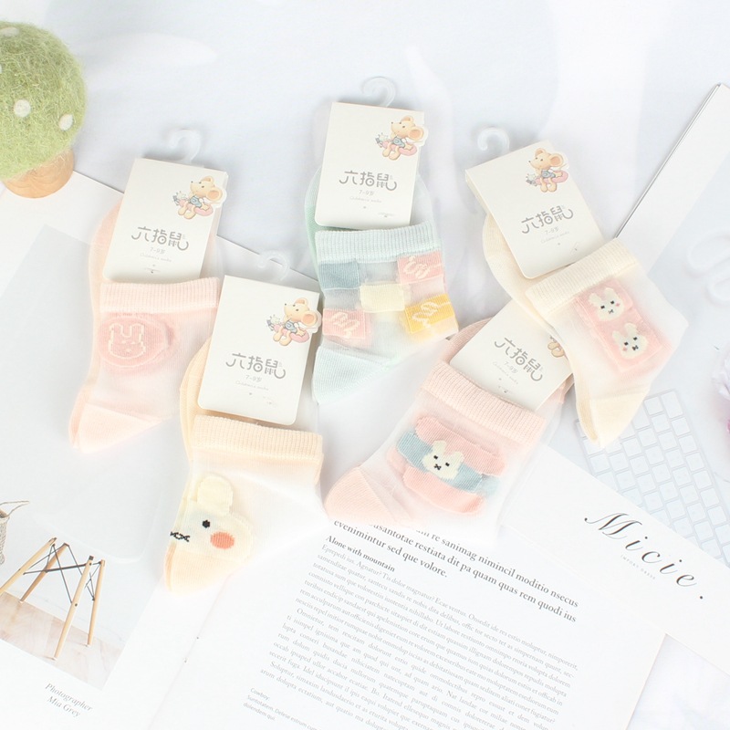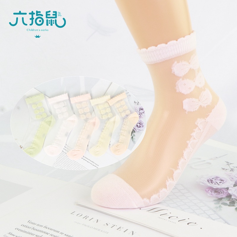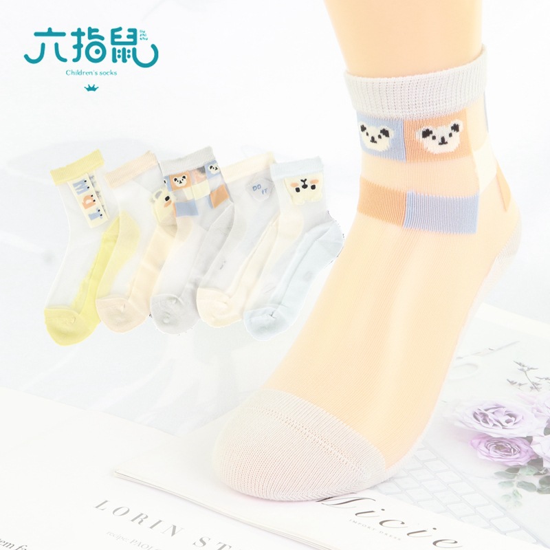6 손가락 마우스 유리 실크 어린이 여름 시원한 공기 양말 1-15 세 소년 소녀 통기성 얇은면 양말 크리스탈 스타킹