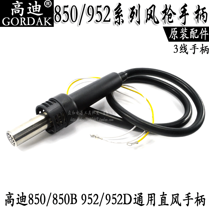 为高迪850/952A等非数显拆焊台原配手柄。满足本产品特点的其他品牌型号也可以通用此款气泵式手柄。(建议咨询客服清楚后再谨慎购买,否则后果自负哦!)