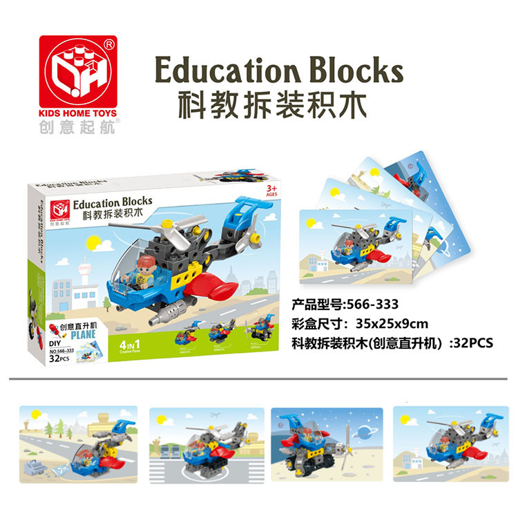 第3款:礼盒装32颗粒积木直升机(1变4)