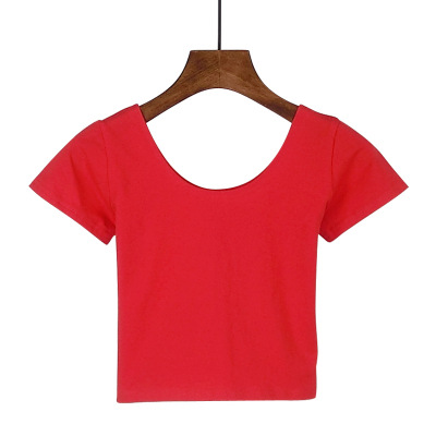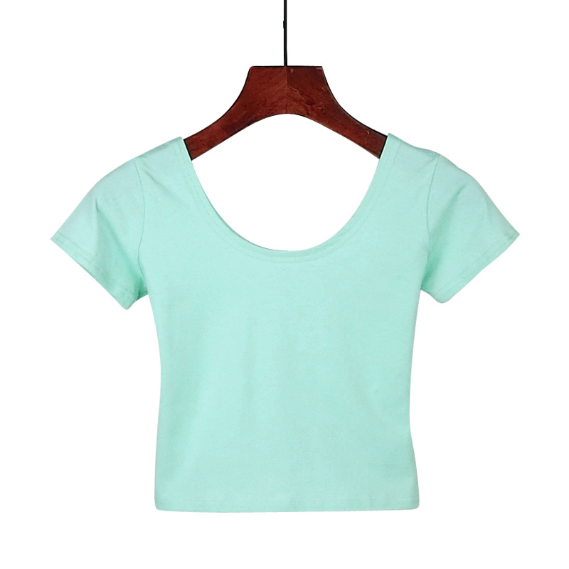 한국어 스타일 순수 꽉 끼는 배꼽 노출 반팔 여성 티셔츠 슬림 하이 웨이스트 짧은 탑 배꼽 노출 셔츠 짧은 티셔츠스토어 가기