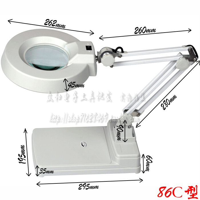 荧光灯光线为三基色,光线没有闪烁感,能保护视力,放大与照明双重组合,使观察更清晰,更入微,可根据不同要求选择放大倍数,台式、弯折式支杆的结构设计,使用户可根据需要大范围调整观察角度和位置。