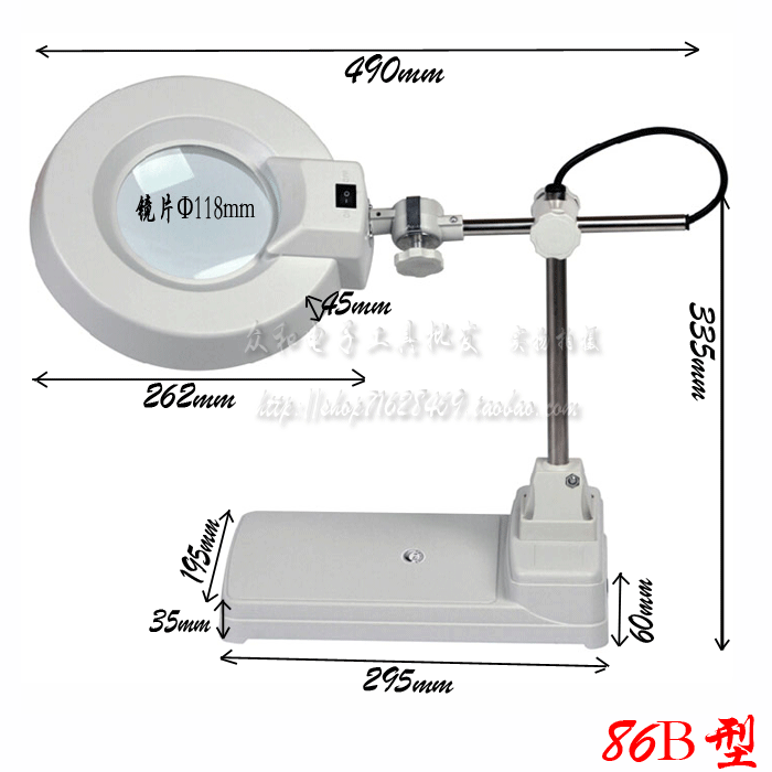 高品质的放大镜工作灯,长时间用不会发烫,适合精密电子业使用。弹簧支架能够根据你对工作环境的需要,固定在任何一点。请远离强光以免意外发生。