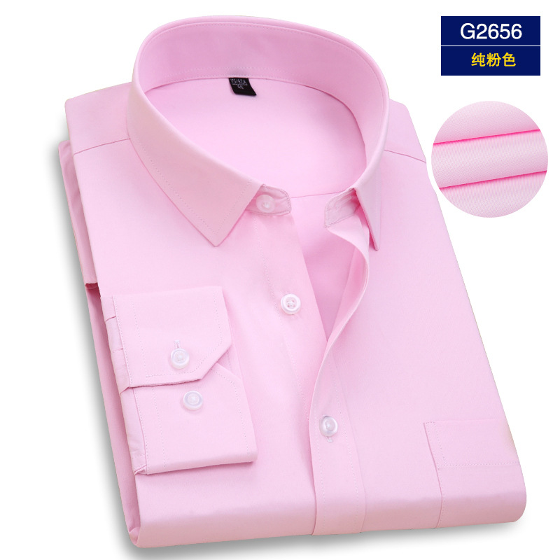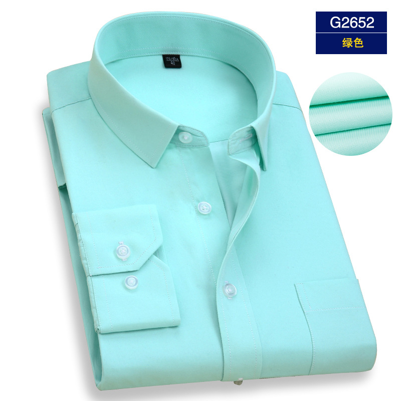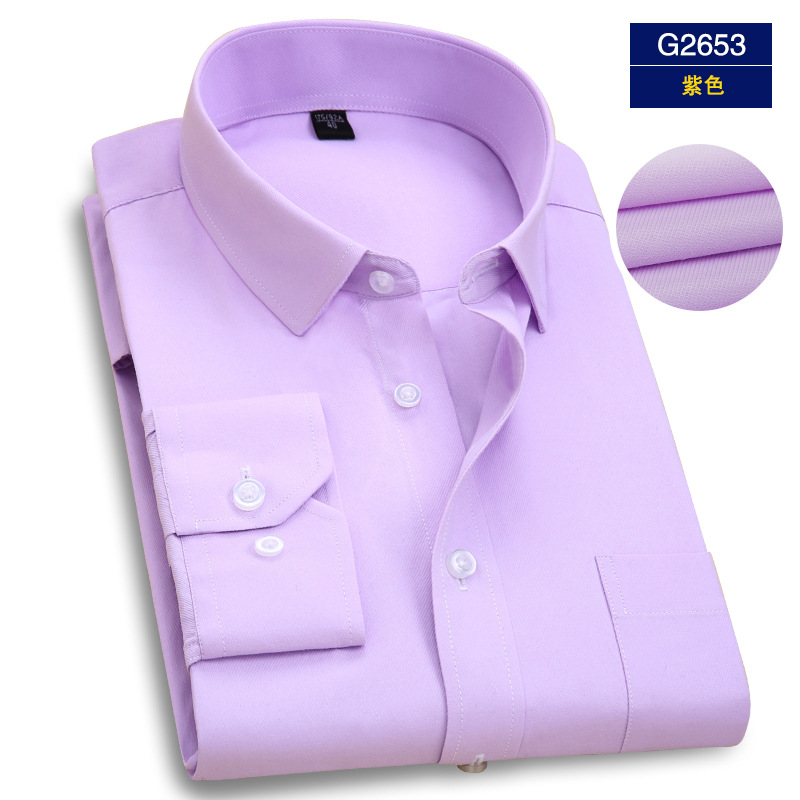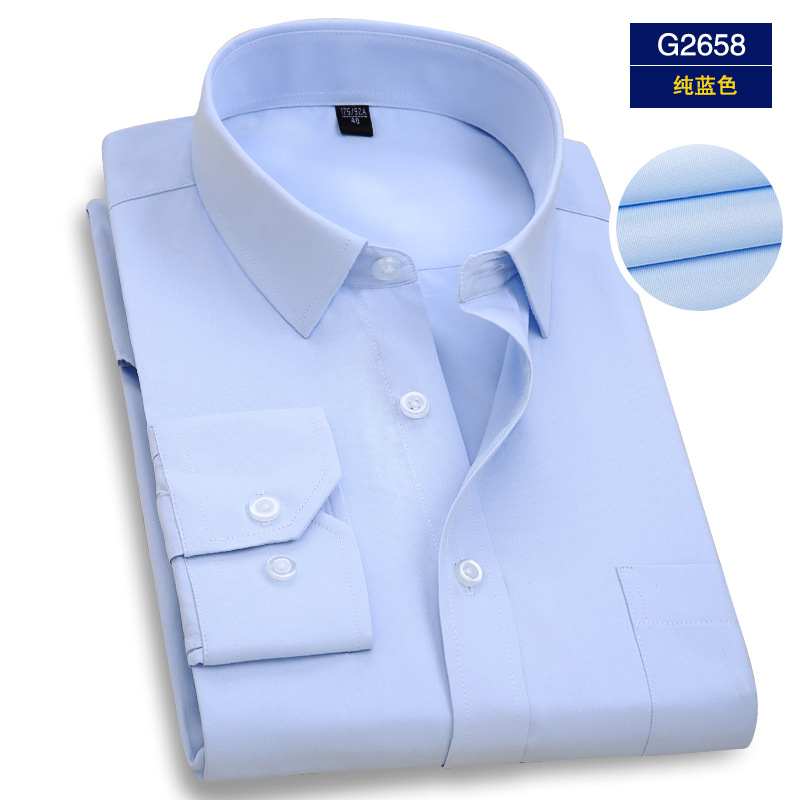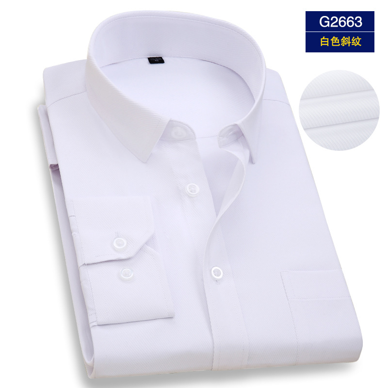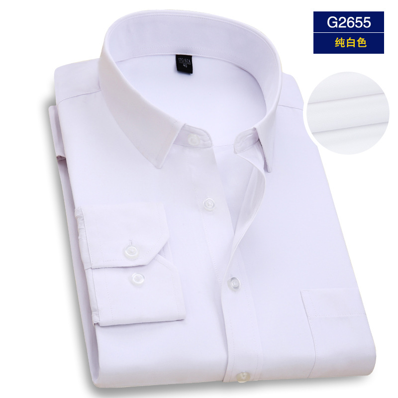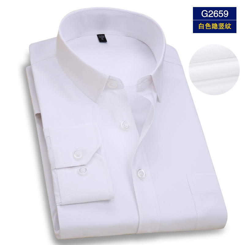엄선된 남성용 전문 작업복 긴팔 셔츠, 남성 비즈니스용 다림질 필요 없는 은행/보험 업계 로고 자수 화이트 셔츠스토어 가기
