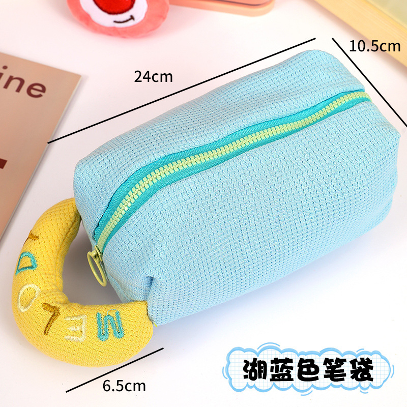 크림 퍼프 연필 케이스 격자 무늬 원단 봉제 보관 가방 대용량 연필 케이스 귀여운 학생 문구 보관 가방