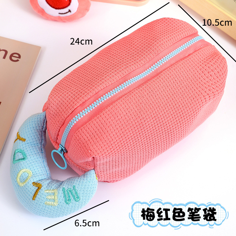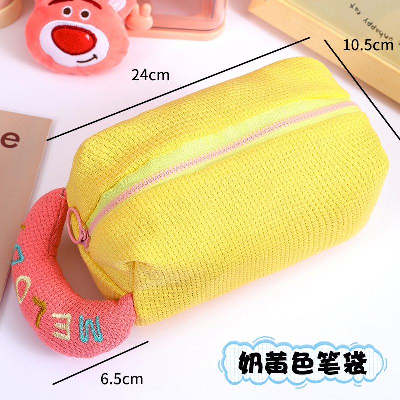 크림 퍼프 연필 케이스 격자 무늬 원단 봉제 보관 가방 대용량 연필 케이스 귀여운 학생 문구 보관 가방스토어 가기