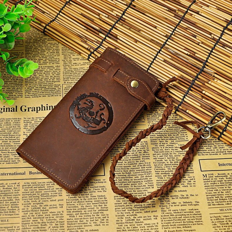 탑 레이어 미친 말 가죽 소가죽 대외 무역 긴 지갑 지갑을 들고 핸드 로프가있는 남성용 복고풍 ss3377스토어 가기