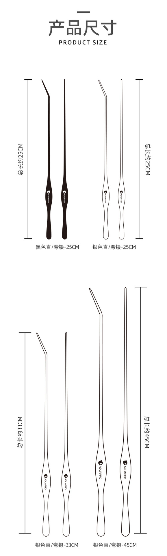 • 25cm 뾰족한 코 곡선 핀셋(티타늄 그레이)