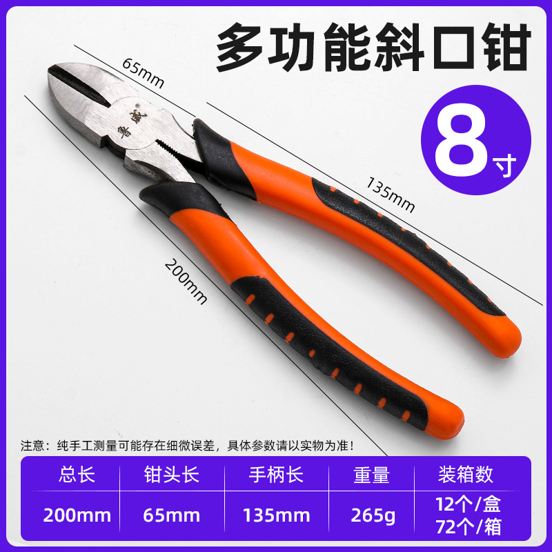 • 호랑이가죽 손잡이 8inch 대각선 펜치 (1박스에 12개, 1개에 72개) 0.26kg