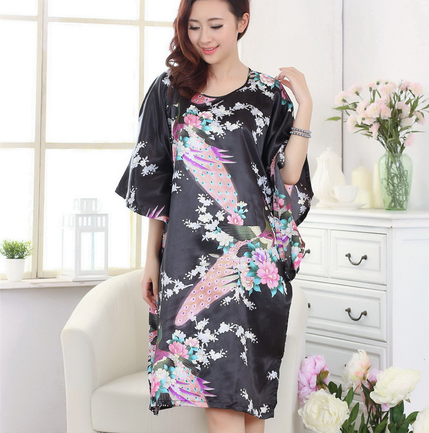 美叶丝达大版扇子图蝙蝠袖睡裙