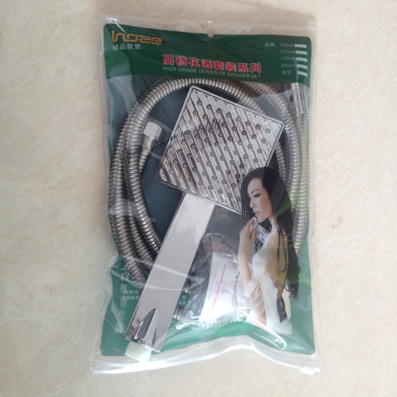 新品三件套加厚美女包装,花洒手喷也可以自己选配,管子默认是1.5米加密管 和1.5米普通管 一件100套量大优惠小球拍套装是小拍花洒+1.5米塑帽小双扣+大元宝 白喷头套装是 白手喷+1.5米塑帽小双扣+大元宝