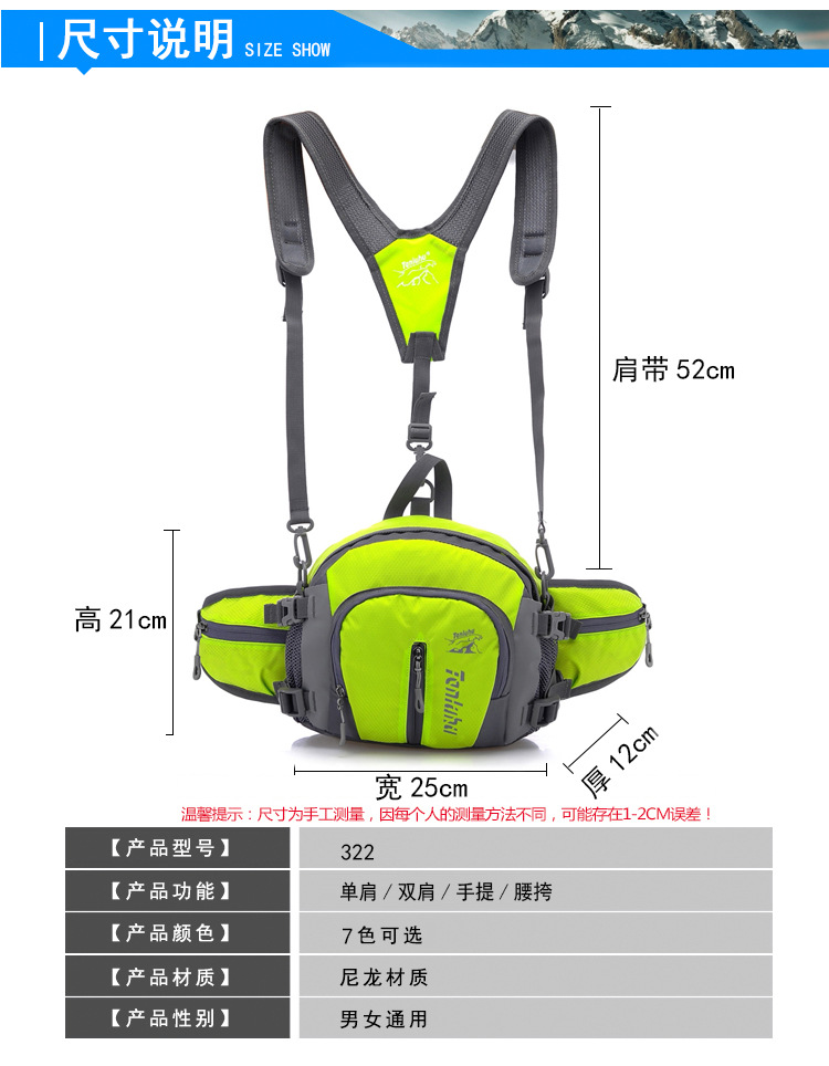 남성과 여성을 위한 국경 간 야외 대용량 등산 허리 가방, 스포츠 사이클링 가방, 다기능 등산 여행 물병 허리 가방