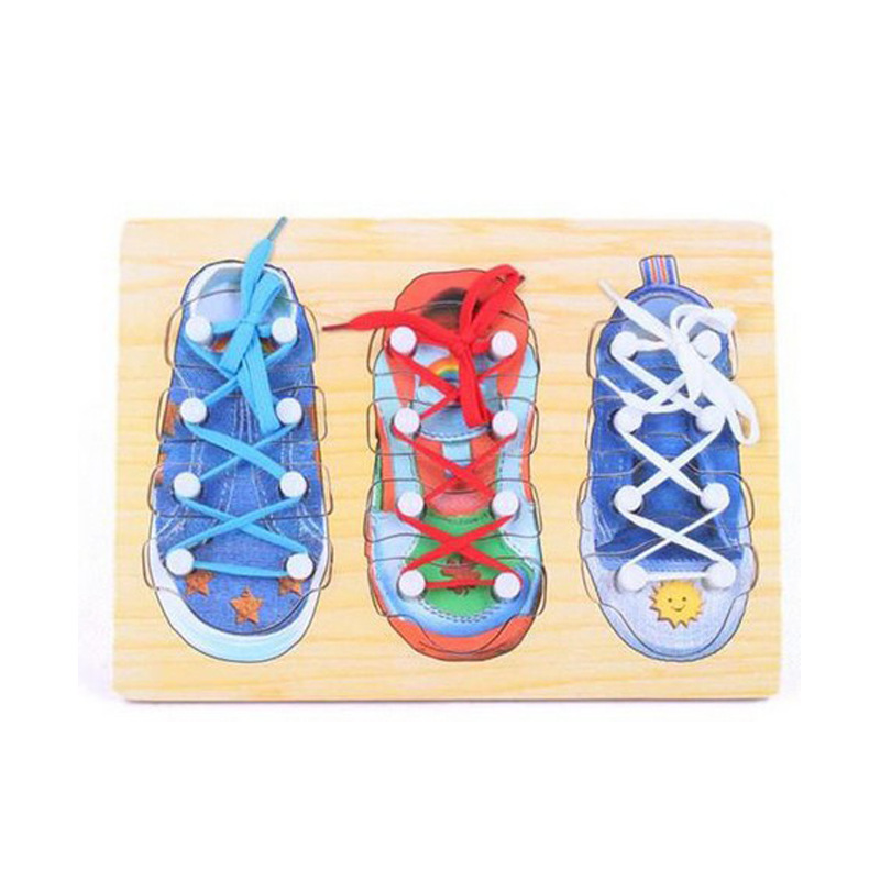 어린이 나무 신발 끈 끈 퍼즐 퍼즐 빌딩 블록 장난감 스레딩 문자열 로프 조기 교육 장난감스토어 가기