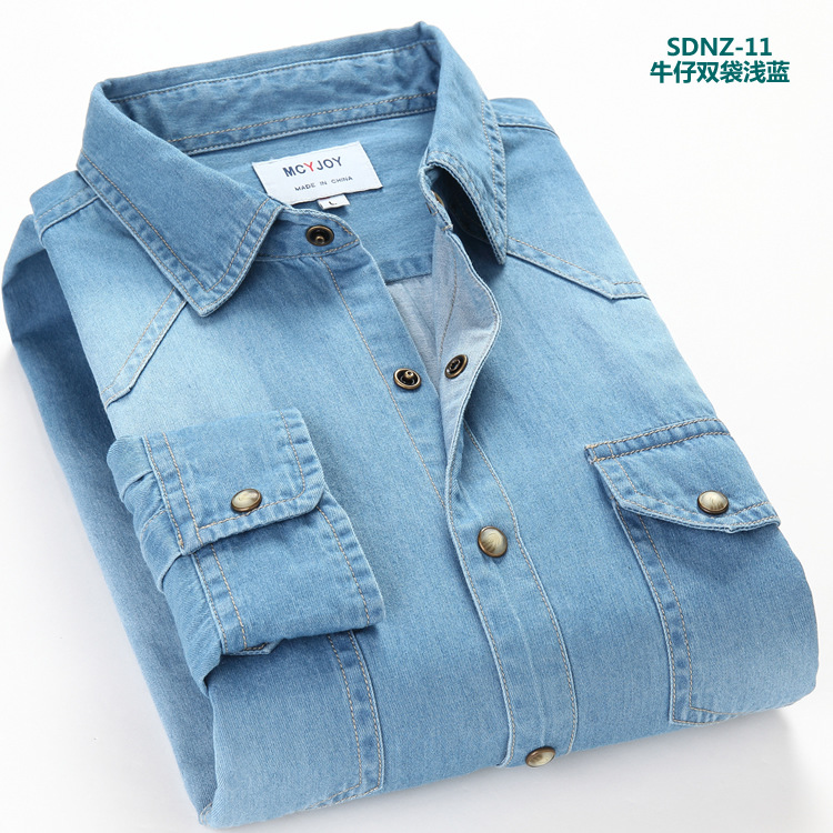 봄 새로운 클래식 트렌디 남성 면 데님 긴팔 셔츠 캐주얼 더블 포켓 남성 데님 셔츠스토어 가기