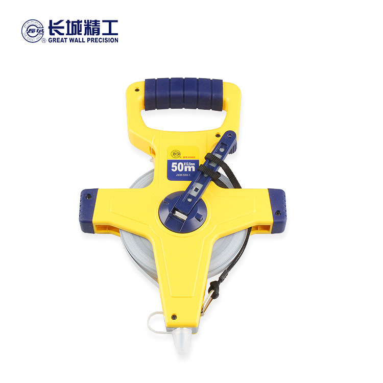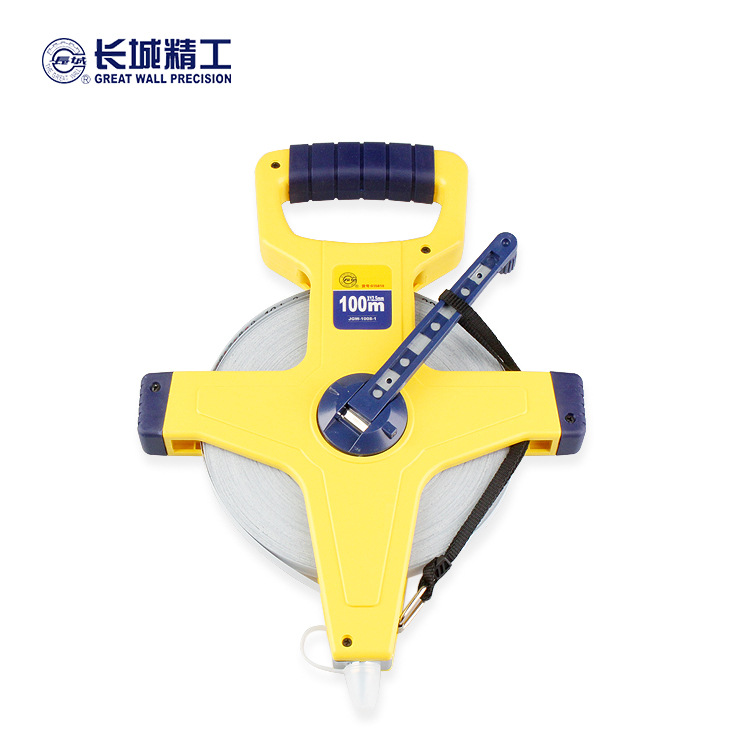 J8-1 시리즈 프레임 유형 긴 테이프 측정 날개 고무 소매 길이 측정 강철 테이프 고강도 로커 핸들 테이프