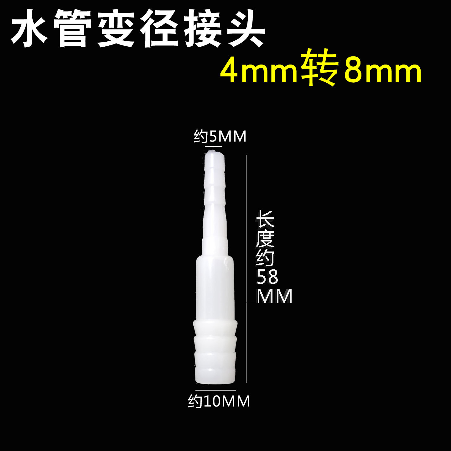 塑料材质,共六个型号,8/12MM互转,12/16MM互转,8/16MM互转,8/10MM互转(说的是软管)