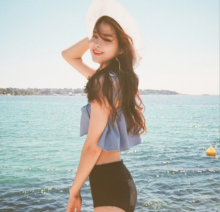 공장 직접 새로운 수영복 여자의 어깨 프릴 비키니 분할 하이 웨이스트 스파 데님 수영복스토어 가기