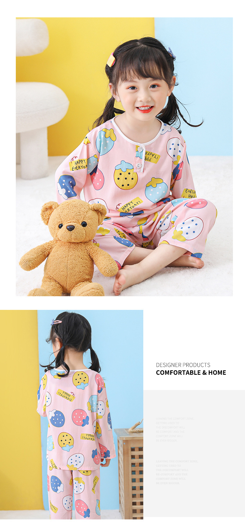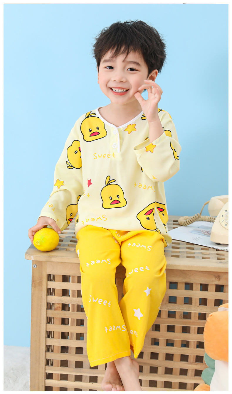 어린이 면 실크 잠옷 여름 얇은 면 실크 긴 소매 아기 가정 옷 소년과 소녀 세트 마구간 도매스토어 가기