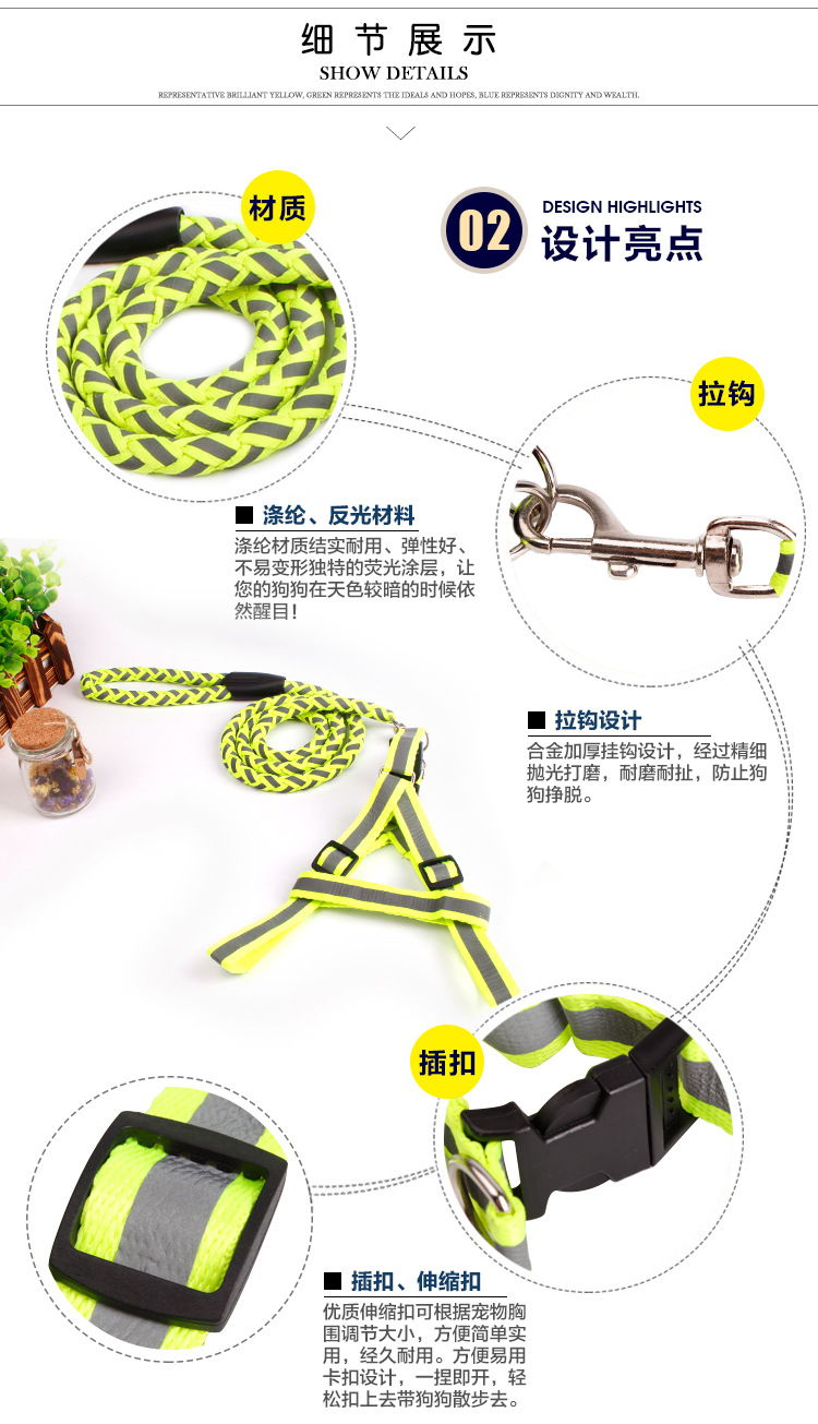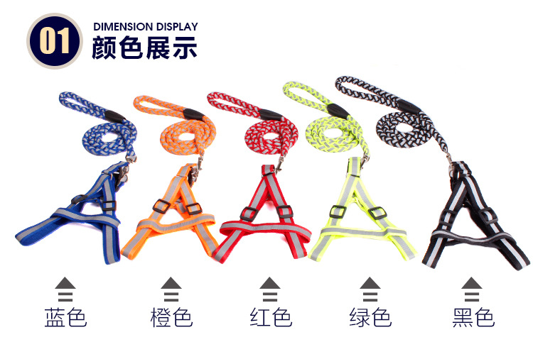애완동물 반사 견인 로프 중소 개 체인 개 가슴 끈 야간 외출 개 로프 공장 콘센트