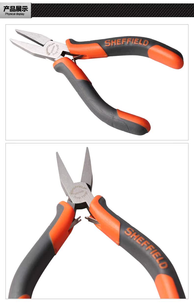 스틸 쉴드 도구 플랫 코 펜치 전자 플라이어 전자 유지 보수 공예 더블 컬러 핸들 미니 이빨없는 플랫 코 펜치