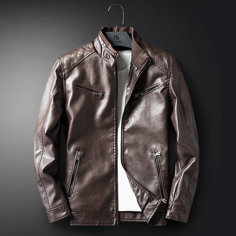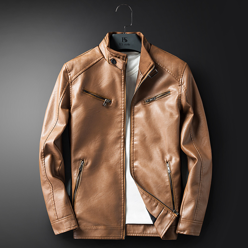 2020 새로운 가을 겨울 따뜻한 오토바이 재킷 남자의 PU 가죽 대외 무역 남자의 패션 가죽 캐주얼 슬림 재킷